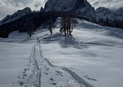 Der heutige Streckencheck fand bei traumhaften Bedingungen statt: winterliche Pracht, stabile Routenführung und ein echter Pulvertraum im hochalpinen Gelände. Die Abfahrt vom Marcherstein bis zur Dolomitenhütte über den Fahrweg ist bestens präpariert und bietet großartigen Skigenuss. Ab der Dolomitenhütte führt die Strecke über die präparierte Piste ins Ziel.